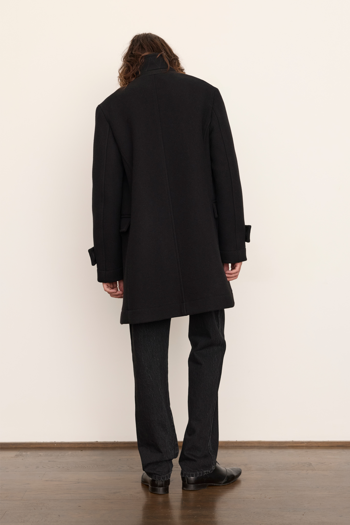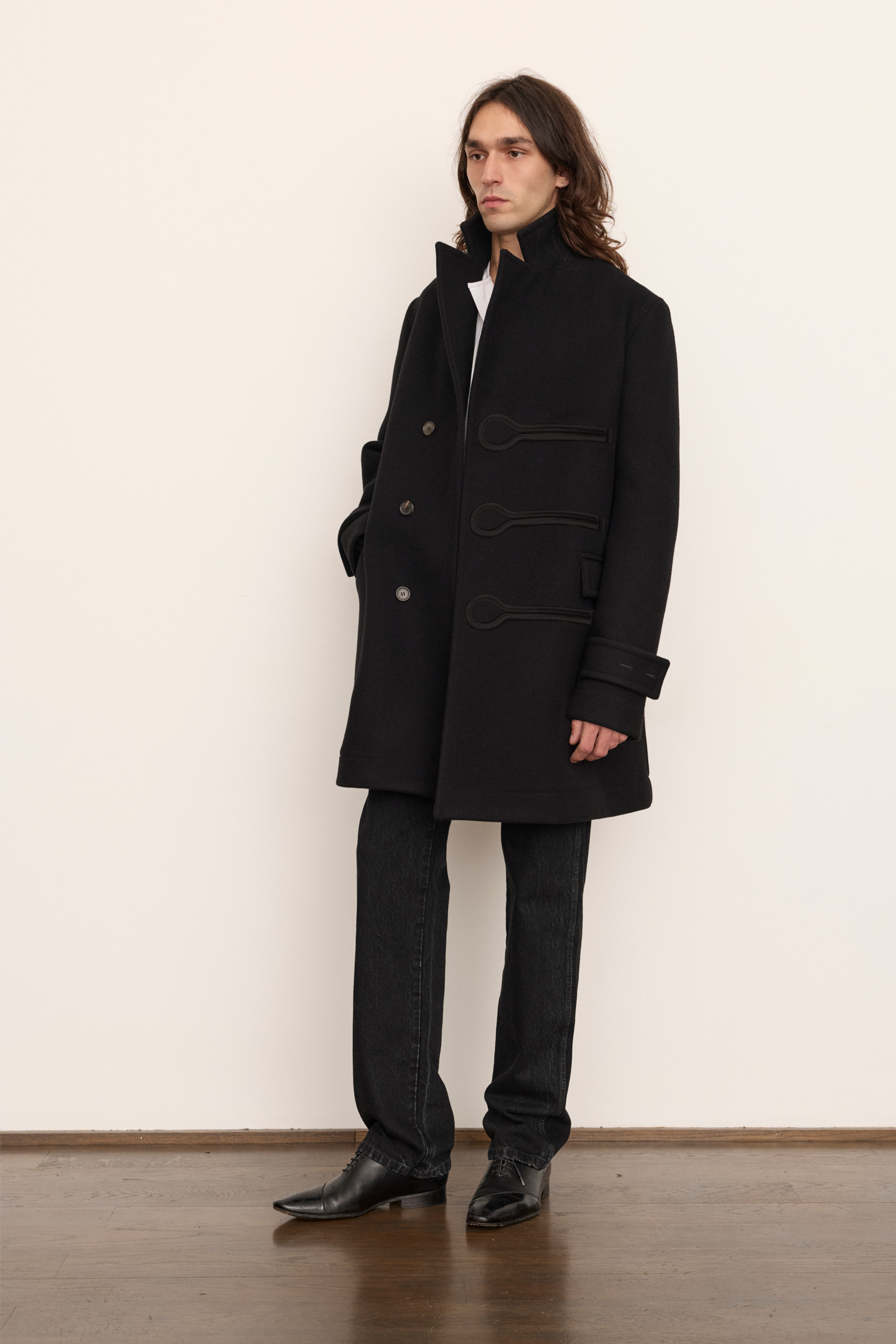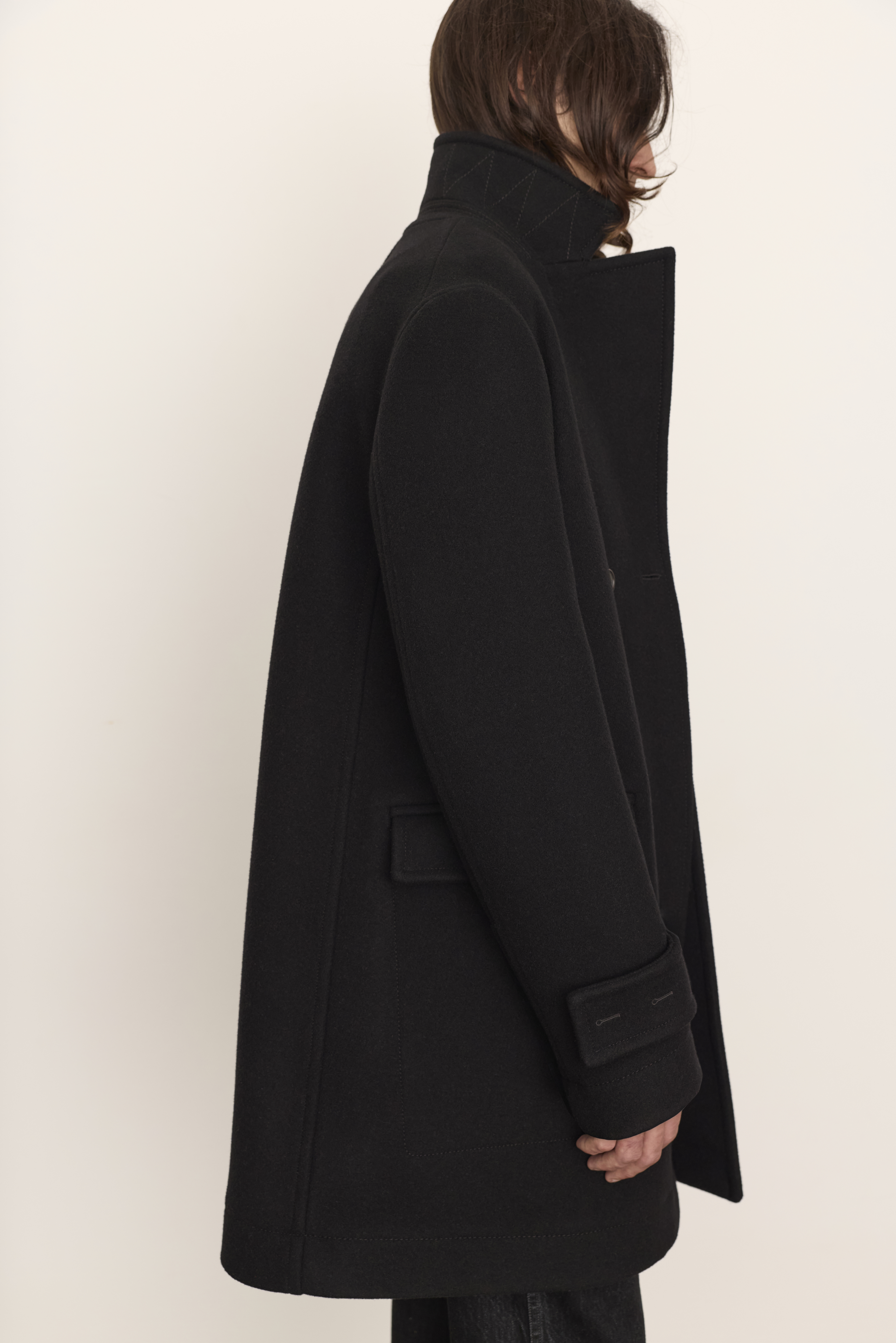Caban long en laine melton avec boutonnières brodées oversize