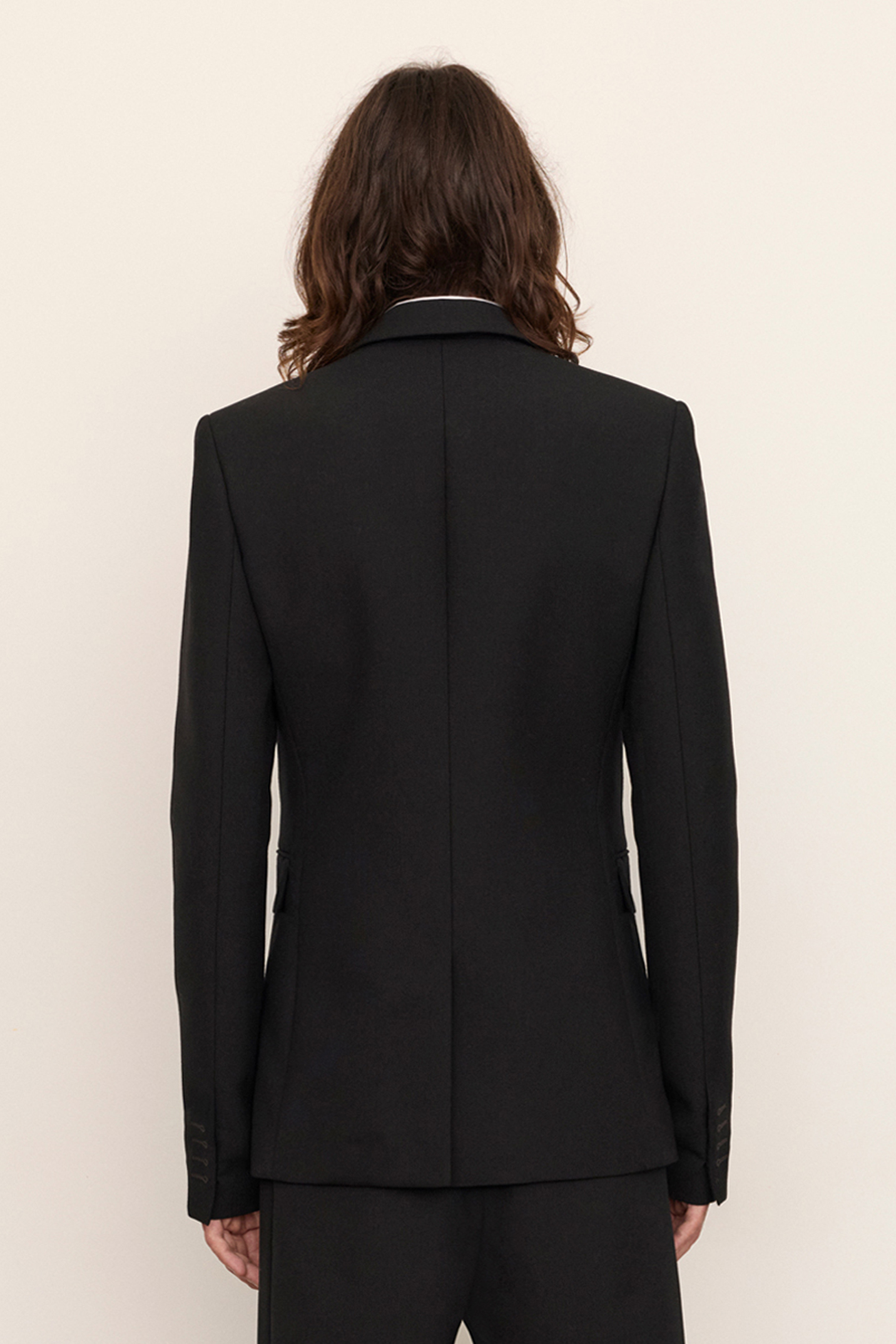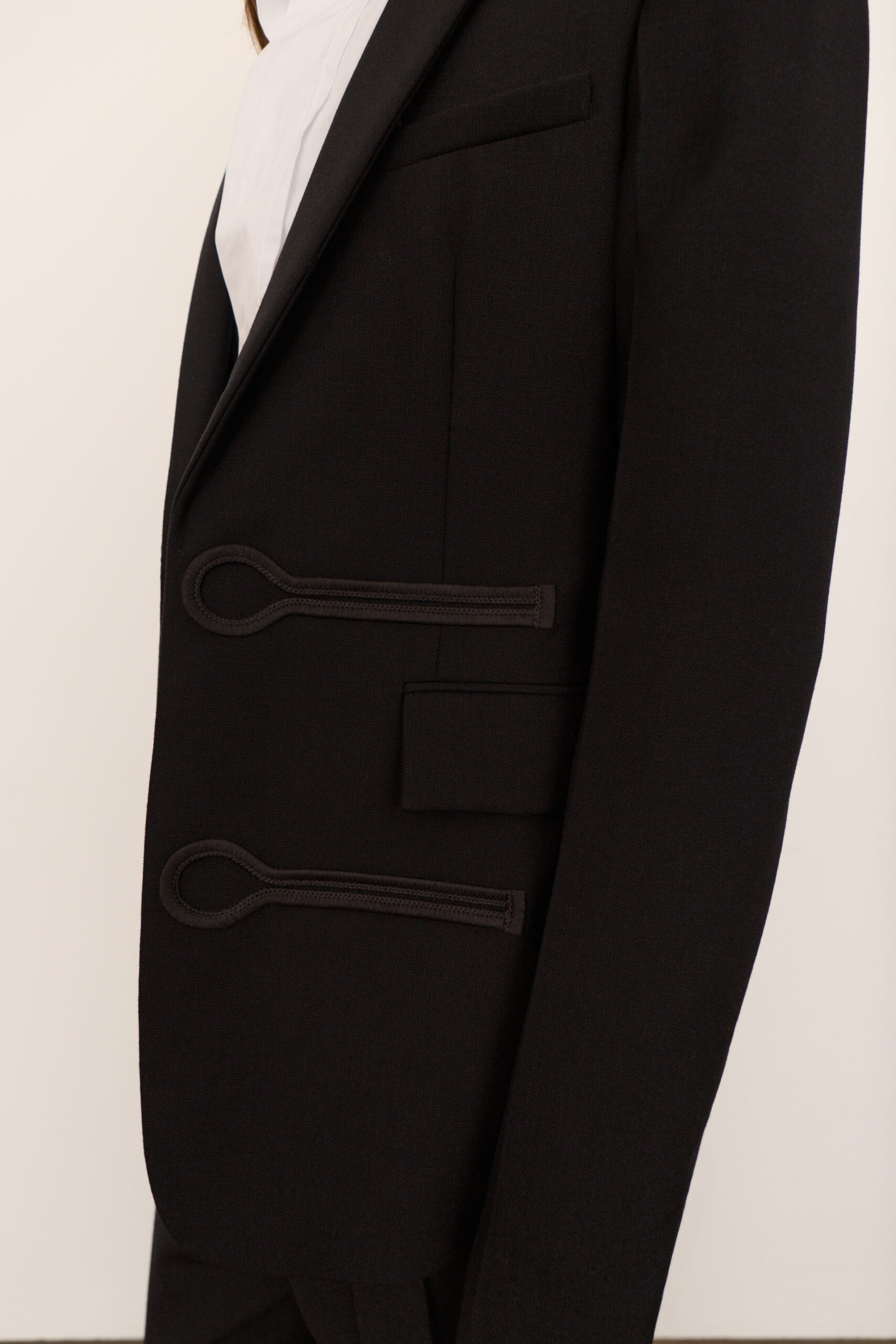 Blazer droit en laine avec boutonnières brodées oversize
