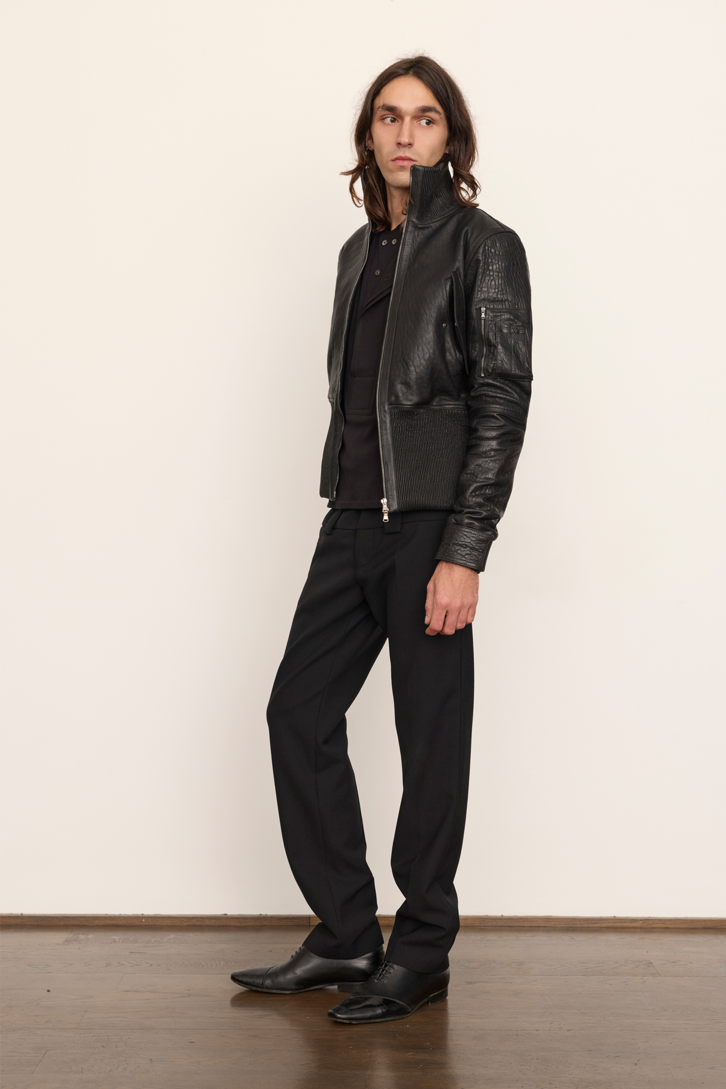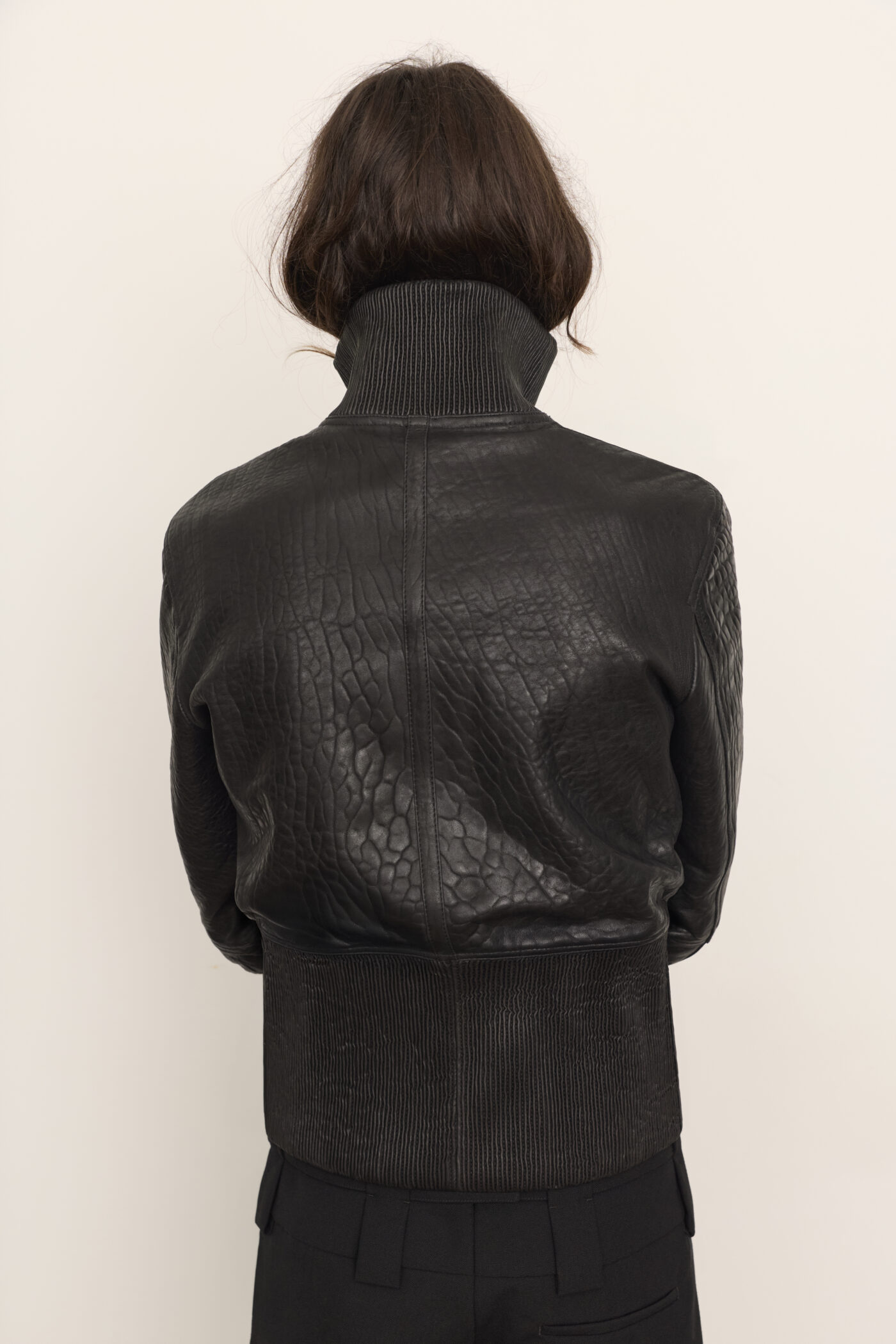 Blouson bomber en cuir d’agneau avec ceinture côtelée oversize